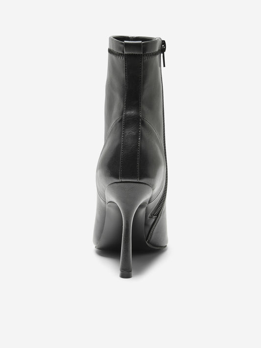 Tall Heeled Vegan Leather Boots - Black