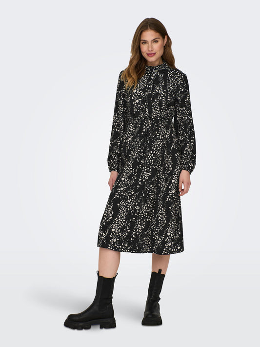 Tilly Long Dress - Black Printed