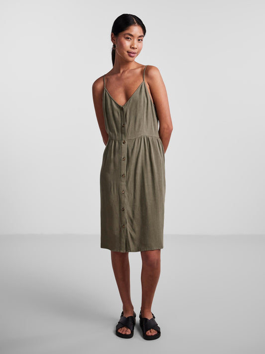 Vinsty Linen Slip Dress - Deep Lichen