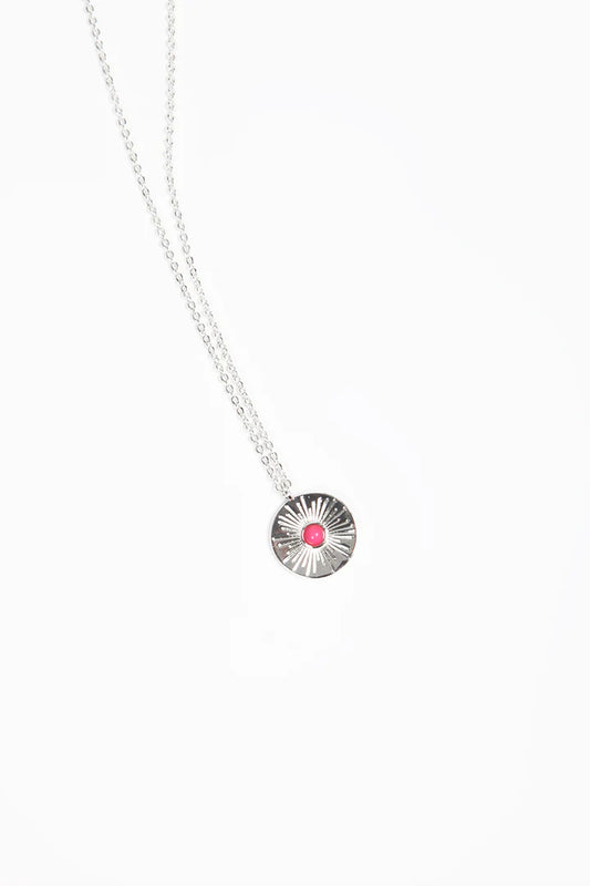 Coin Pendant Necklace Centre Stone - Silver Pink