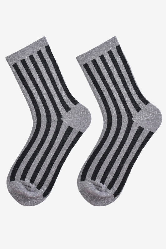 Women's Glitter Vertical StripeSocks - Dark Grey/Black