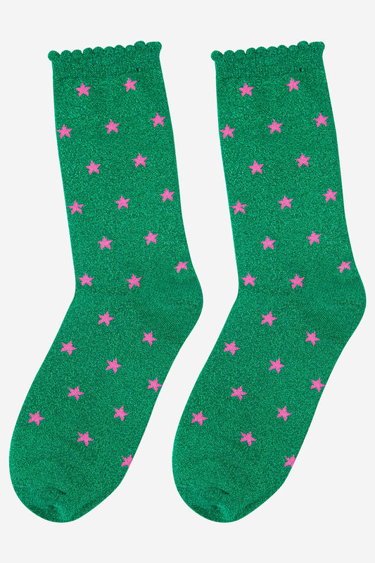 Women's Glitter Socks - Green/Stars